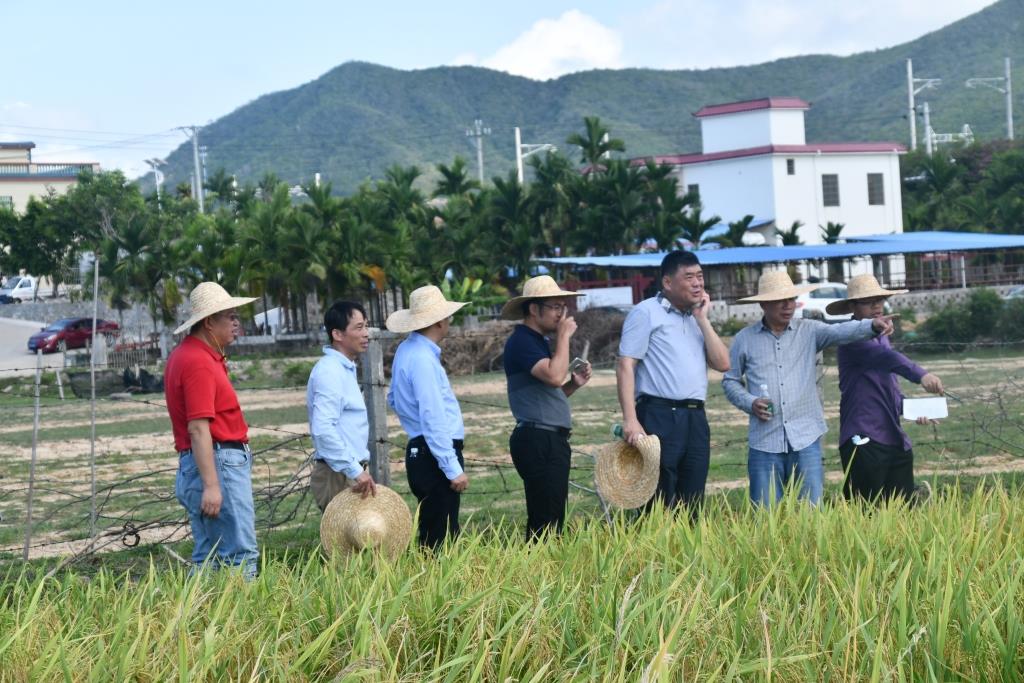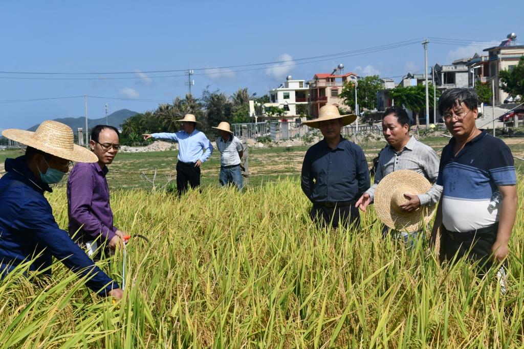 5月11日,广东海洋大学袁隆平院士海水稻创新团队邀请湖南省、海南省、广东省等相关单位专家,对我校位于三亚市崖城区崖城镇太策村的耐盐碱水稻杂交组合及种质材料和滨海盐渍水稻田改良剂应用试验进行了现场评价和测产验收,土壤盐浓度为0.3-0.5%(田间表层水盐分浓度为0.48%)。