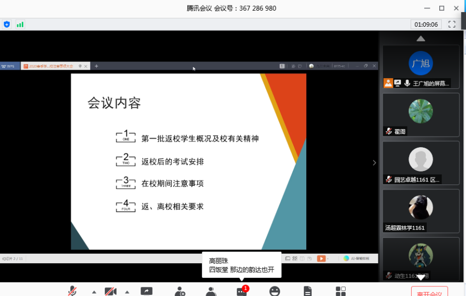 会上,王广旭老师结合我校《广东海洋大学关于2020年春季学期第一批学生返校的预通知》、《关于2020年春季学期毕业班学生补(缓)考、重考安排的预通知》和《关于做好第一批返校学生相关服务工作的通知》等文件精神。从第一批返校学生概况、返校后的考试安排、在校期间注意事项和返、离校相关要求四个方面,向优直播nba