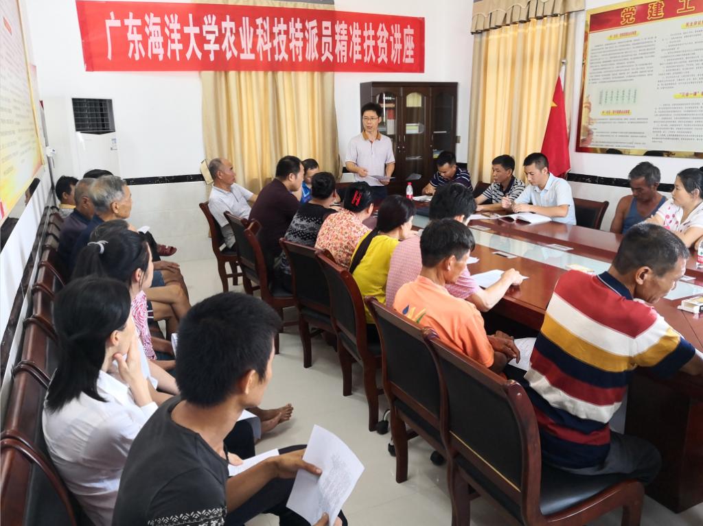 马驿教授作为省农村科技特派员,分别在湛江市麻章区太平镇六坑村、岭头村、陈渔村、南夏村等贫困村,扎实开展脱贫帮扶工作。他开展了走访调研,与驻村干部及村民座谈,组织村民进行技术培训,发放相关技术资料与鸡苗、消毒液等活动。