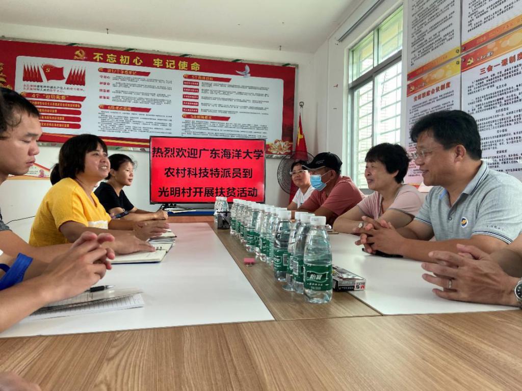 今年是脱贫攻坚收官之年,按照学校“服务乡村振兴战略暨农村科技特派员暑期大下乡工作推进会”部署,8月20日我校农村科技特派员高振华研究员、尹福泉副教授、朱宏波副教授、卢艳丽博士、广东海洋大学校医院田国庆院长及三名研究生(陈俊宏、牛志力、郭广振)等10余人,专程前往湛江市坡头区南山镇光明村,开展精准扶贫工作。