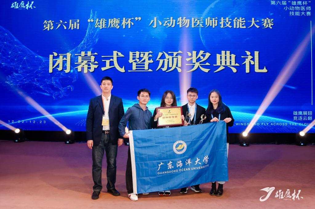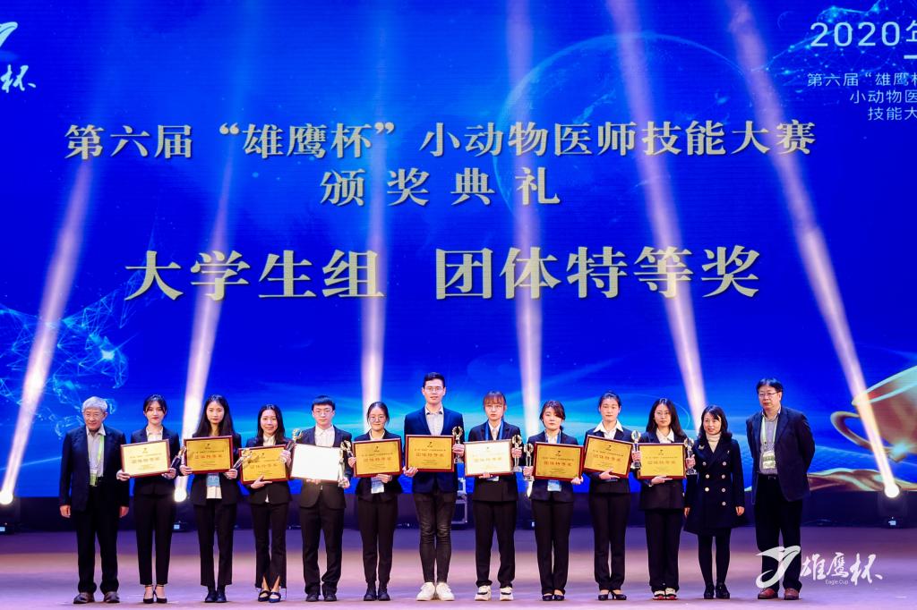 院长联席会、中国兽医协会联合主办,华南农业大学、新瑞鹏宠物医疗集团联合承办的“第六届雄鹰杯小动物医师技能大赛”在广州华南农业大学拉开帷幕。我校派出以动物医学系主任巨向红教授为领队,姚秋成博士为指导老师,陈丽嘉、章朝坤、吴雨书和黎炳坤为选手的参赛队伍,经过两天的激烈角逐,取得了 “大学生组”团体特等奖、“大学生组”优秀辅导老师特等奖及个人“中国兽医新星奖”的好成绩。