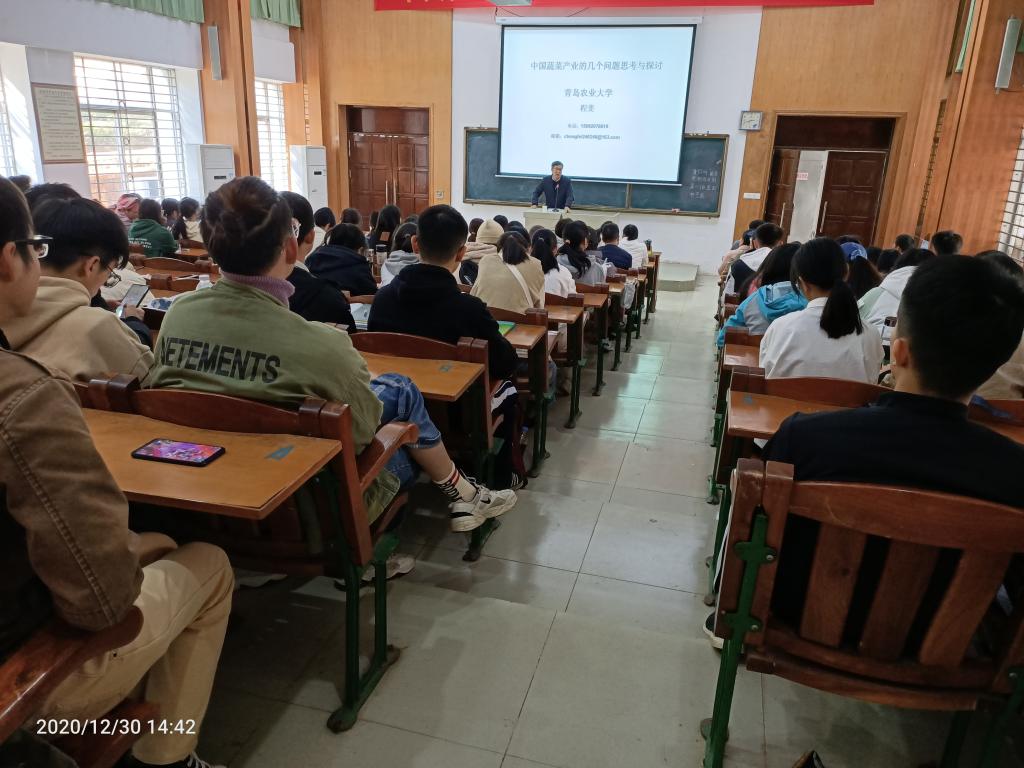 会上,程博士介绍了中国蔬菜种植产业的基本概况、目前产业面临的挑战和产业存在的问题和机遇,以及蔬菜产业的发展趋势,着重结合他本人亲身经历及所见所闻详细讲解了目前蔬菜产业所面临的关键技术和农业经营方式等。