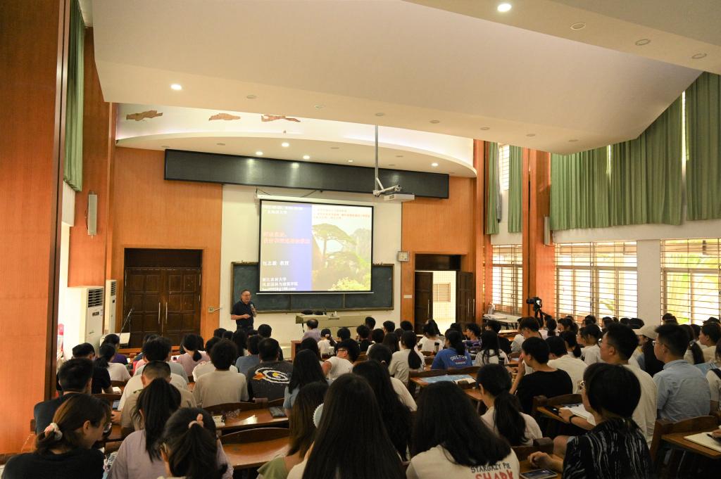 包志毅教授结合案例阐述了植物景观的十大功能和价值,提出自然是美的终极标准,师法自然是植物景观设计和营造的根本原则,解析师法自然之形态—结构—过程—功能—人本需求等设计方法体系,同时结合地域特色与乡土风貌,为我校风景园林学科热带滨海特色把脉。近三个小时的专题讲座,师生浸润于包教授的师者之道、学者之风。包教授引用马克思的话“我们的事业并不会显赫一时,但将永远存在!”,鼓励同学们坚定奉献风景园林事业之心。