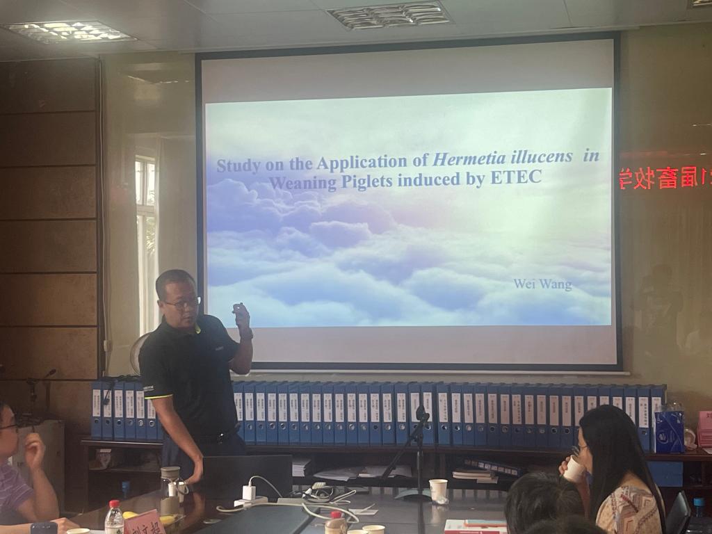 王玮教授围绕黑水虻替代鱼粉添加进饲料后仔猪肠道屏障和免疫功能研究进行了详细讲解,并对仔猪灌胃肠毒性大肠埃希杆菌(ETEC)后发生的一系列免疫调节反应和调节机制进行了阐述。