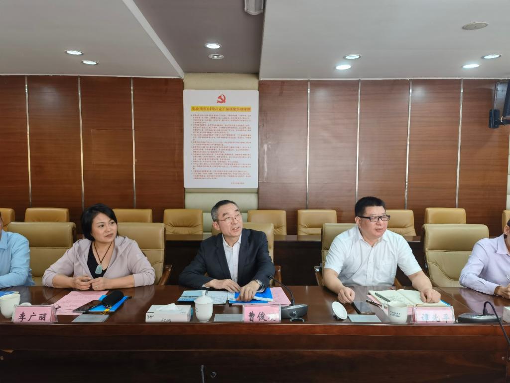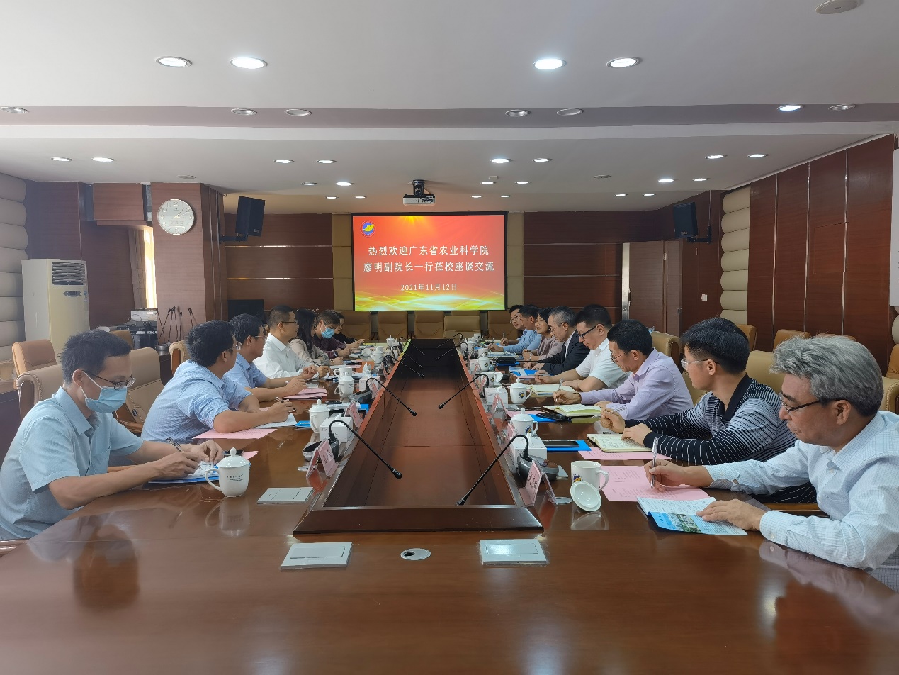 副院长廖明带队来我校就科技合作和研究生联合培养等工作进行交流,我校党委书记曹俊明、副校长谭北平和相关部门领导参加了交流活动。活动由曹俊明书记主持。