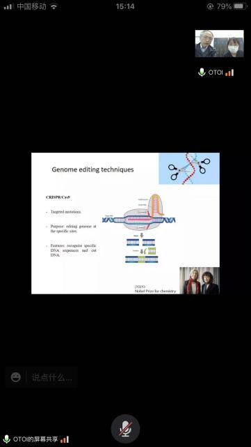 师生作了题为“基因编辑技术在动物中的应用:通过基因编辑生产转基因猪技”和“利用脂质转染试剂的基因编辑新方法”的线上学术报告。动物医学专业和动物科学专业的教师、研究生、本科生90余人聆听了报告,本次报告会由动医系系主任巨向红教授主持。音井威重教授和林青怡博士讲述了动物基因编辑技术发展历史及现状,结合自己研究内容对有关抗病育种为目的的转基因猪的生产技术现状进行了深刻的分析。音井威重教授和林青怡博士的报告深入浅出,内容前沿,令大家耳目一新、受益匪浅。报告结束后,音井威重教授与参会师生进行了深入的交流,师生十分踊跃地向日本专家提出问题,并得到了精彩解答。
