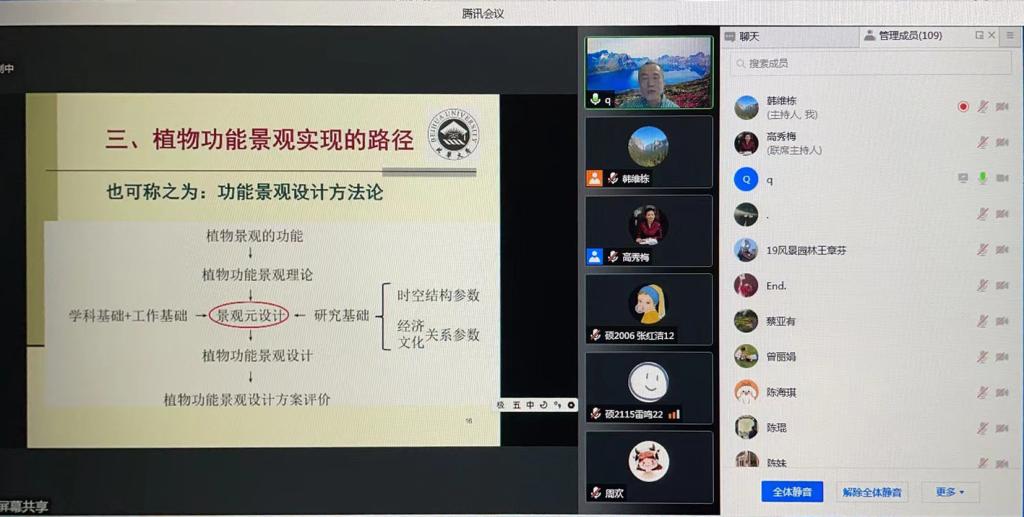 本次近2小时的报告会拓展了与会师生的景观视野、丰富了景观理论、加深了传统园林文化的认识;同时,本次在线学术交流成功举办突破了南北地域差异,交流了不同地域环境下植物功能景观设计的不同特点以及未来在区域差异特征下的交流与合作。