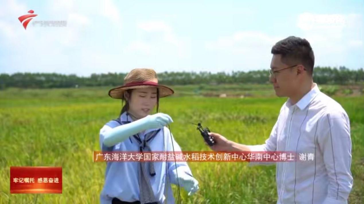 9月4日,广东卫视《飞越广东·奋楫新时代》节目报道了我校袁隆平院士海水稻创新团队在江门市新会区银湖湾新洲围高含盐量滨海滩涂上种植的耐盐碱水稻。正在田间调查取样的我校国家耐盐碱水稻技术创新中心华南中心的谢青博士向节目做了介绍,在去年种植示范的基础上,经过近两年时间的稻作改良,我校引进人才江行玉教授课题组进一步优化栽培技术措施并扩大示范面积,种植效果明显提高。
