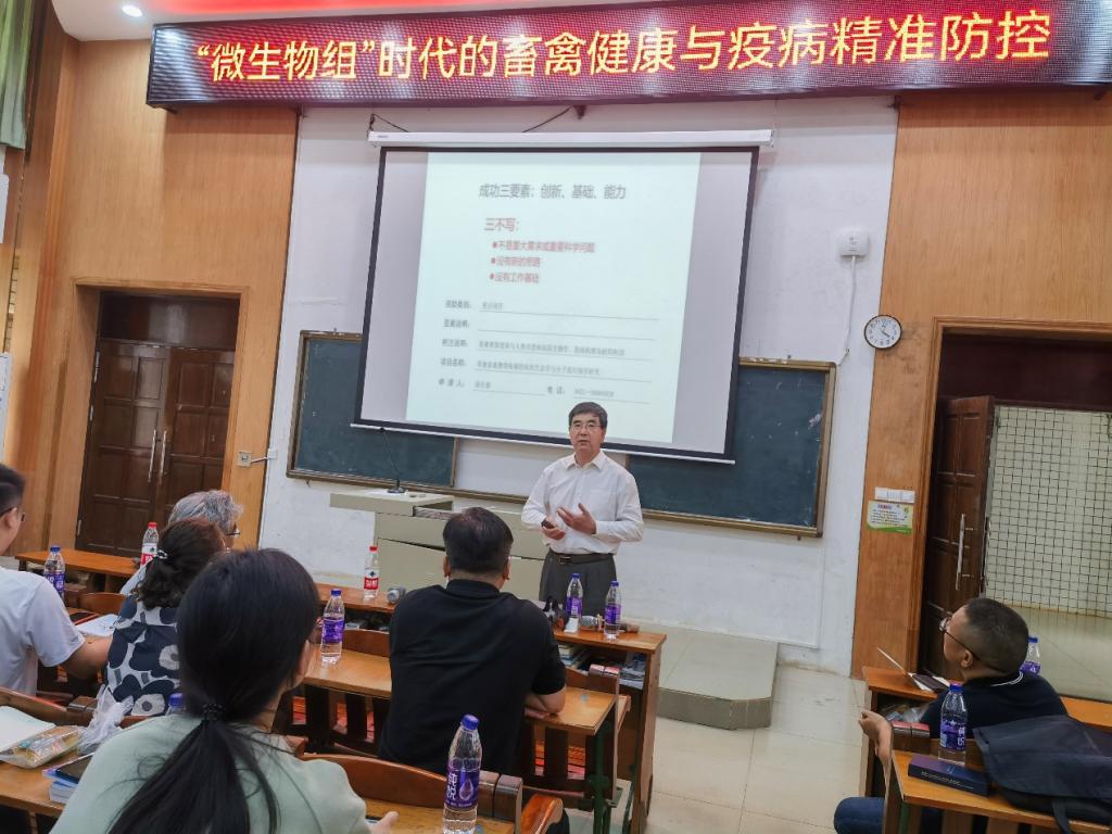 军事医学研究院军事兽医研究所研究员涂长春应邀为我校师生作了题为《“微生物组”时代的畜禽健康与疫病精准防控》的学术报告及《NSFC课题申请书撰写》的辅导报告。报告会分别由优直播nba
