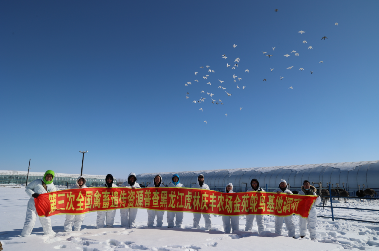 按照国家农业农村部部署的第三次全国畜禽遗传资源普查,由我校教师、特禽鸵鸟普查国家指导专家杜炳旺教授为首的专家团队,会同中国鸵鸟养殖开发协会,于2023年2月19-26日奔赴黑龙江大庆全兴鸵鸟场和鸡西虎林金苑鸵鸟养殖基地对我国寒地鸵鸟品种的养殖现状开展了现场考察调研、样品采集、性能测定、影像拍摄及座谈交流。