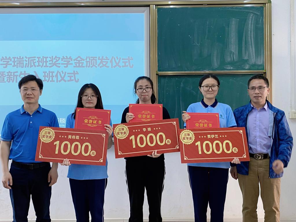 随后,2022年瑞派班学生进行了嘉奖仪式,根据考核结果对张怡、郑聪聪、何沛琳、刘梓杰等13名学生发放奖学金,并合影留念。