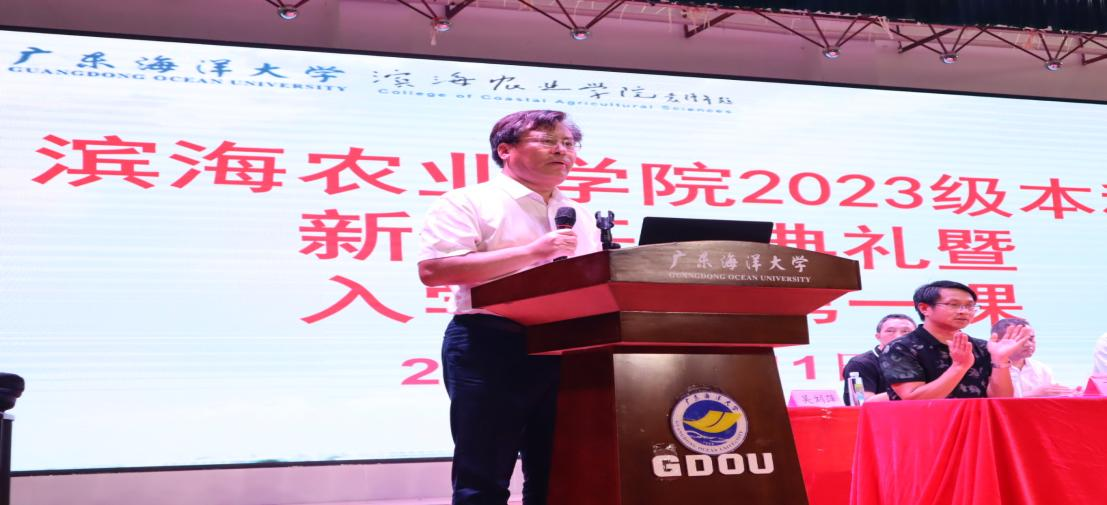 院长郑殿峰、副书记陈嘉文、副院长殷学贵从不同维度给新生们讲了第一课:“大学是什么”、“为什么读大学”、“大学读什么”三大专题。让学生了解认识我校的理念、精神以及校院的历史、文化、功能、特色、培养目标、学风、名师、发展、机遇、愿景等,明确新时代青年的责任和使命担当,树立正确的人生观、世界观、价值观的重要性,提升自我、完善自我,实现更远大的人生愿景的重要性;明白专业人才培养方案、课程体系构成以及学籍管理相关制度等,对学生尽早适应海大,转变角色,进入大学的正常学习和生活,做真正的海大人、农院人,沉下心,学好专业,规划好职业生涯等具有重要意义。