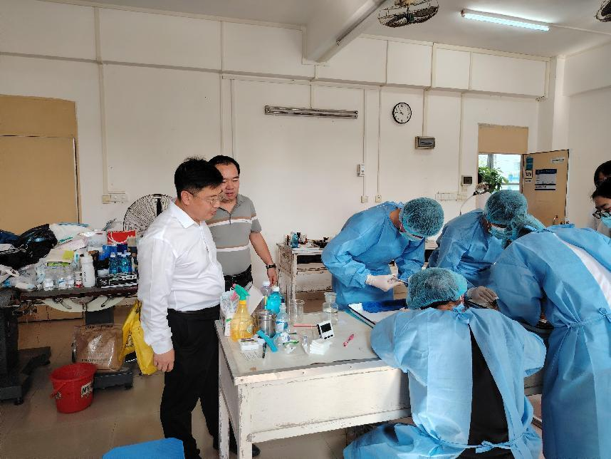 在教学动物医院,听取了巨向红主任对动物医学专业沿革、学科建设、创新团队建设情况及教学科研成果的汇报,视察了教学动物医院门诊部、化验室、住院部、手术室及各科研团队等运行情况,询问了有关重要动物疫病病原检测、生物安全二级(P2)实验室建设及CNAS认证工作的推进情况,强调科研工作要以提高服务地方产业的能力和水平为主攻方向,为乡村振兴贡献广海大力量。