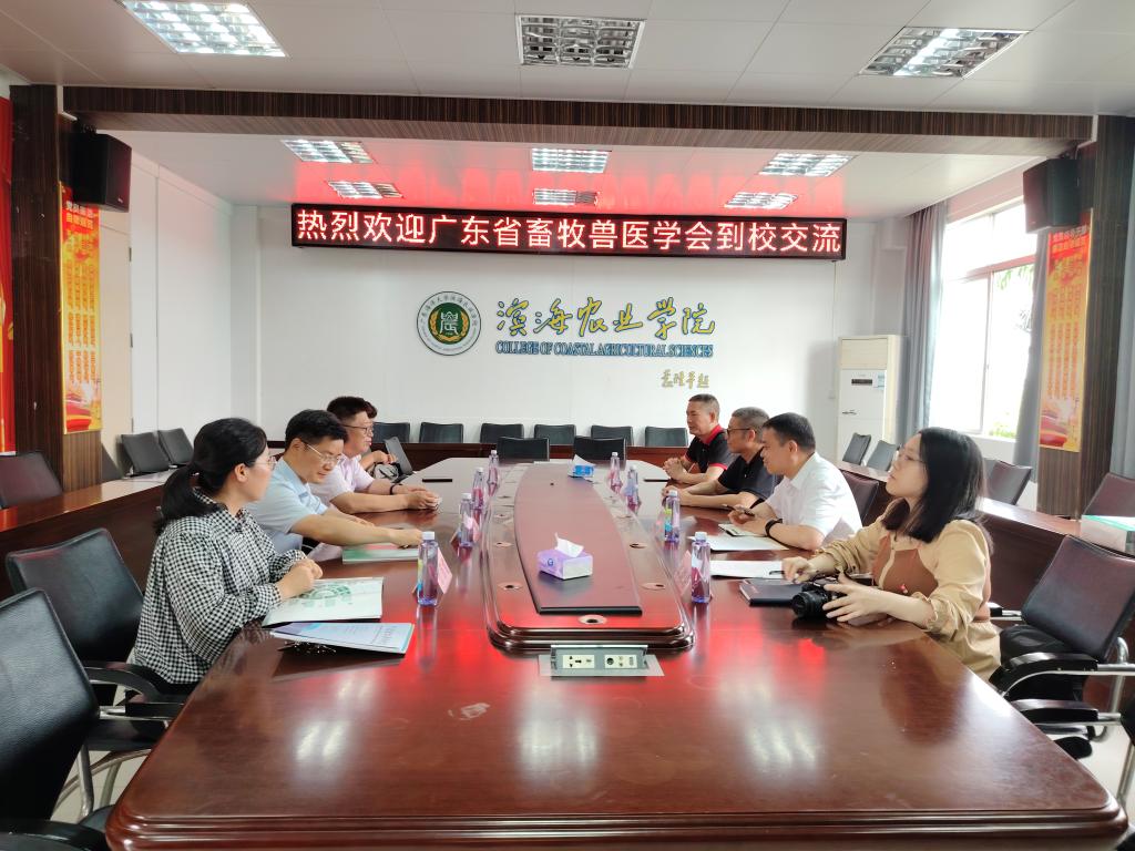 和畜牧兽医学科发展的历程及现状。付杰就学会开展的服务和负责的工作进行了介绍,重点在畜牧业标准化技术培训、第三届广东省宠物行业职业技能竞赛办赛、畜牧兽医相关职业技能证书培训等方面进行介绍。双方在人才培养、科学研究等方面进行了深入交流。