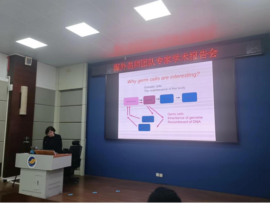 音井威重教授以“Development of AI (artificial intelligence)-based method for diagnosing the right time for insemination in cattle”为题目,详细讲解了人工智能在牛人工授精上的行为甄别、时间选取以及授精质量,并对其应用前景和价值进行了探讨。佐藤陽子教授以“Sperm Biology--How can we understand the mechanism of spermatogenesis?”为题目,她从有丝分裂、减数分裂再到形变发育而成精子,详细阐述了人和哺乳动物精子发生的机制。同时,德岛大学林青怡博士生和鳥越菜菜花研究生分别作了猪卵母细胞、受精卵和囊胚在短期常温小保存培养基的开发利用研究与猪受精卵电穿孔导入CRISPER/Cas9系统基因编辑前离心处理对后期胚胎发育和基因编辑效率的影响机制的报告。报告讲解深入浅出,内容围绕研究前沿,令大家耳目一新。会后,报告人与参会师生一一进行了深入而细致的交流、探讨。
