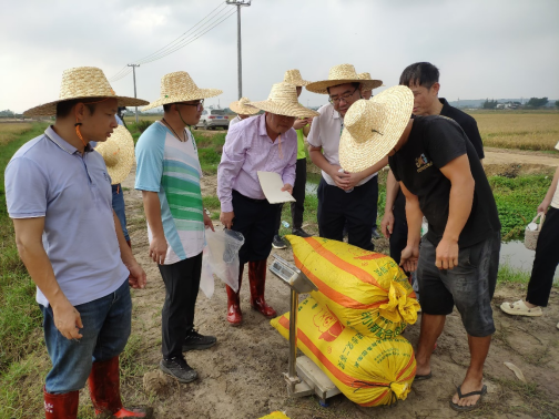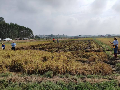 、华南农业大学和吉林农业大学等单位专家对我校牵头承担的“2024年省级乡村振兴战略专项资金农业科技发展及资源环境保护管理项目《盐碱地综合利用与改良技术研究与示范项目》”中的“盐碱地水稻种植试验示范”进行现场测产。此次测产的地点位于廉江市高桥镇红寨村滨海盐渍滩涂,此地土壤含盐量0.46%,pH值为3.8。