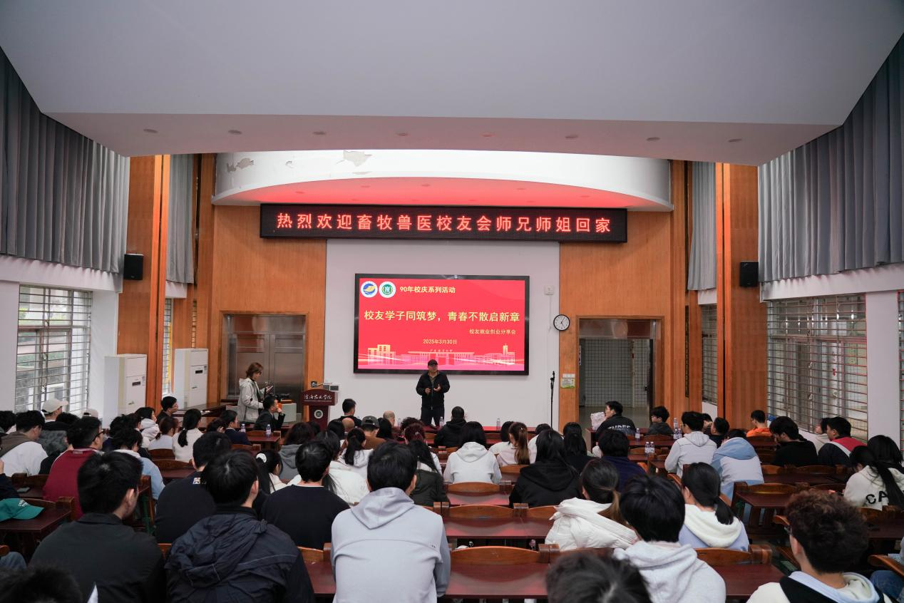 党委副书记王继全主持活动,院长马驿、动科系主任尹福泉、动医系主任丁月霞和畜牧兽医协会会长饶国万等校友及师生代表齐聚一堂,共话职业发展与行业未来。