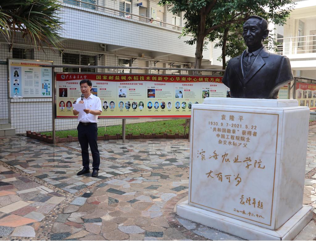 在兴农楼袁隆平院士铜像前举行“禾下丹心永铭记,稻香万里育新人”追思活动。优直播nba