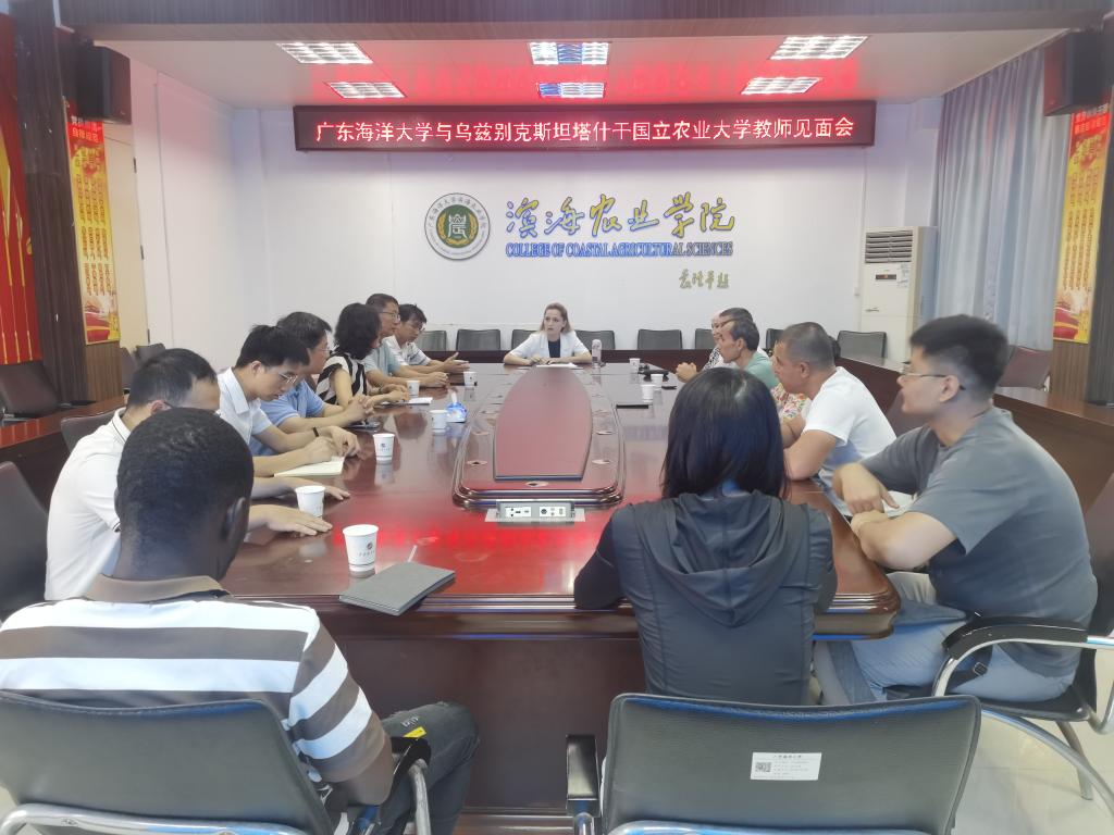 依托中国-乌兹别克斯坦盐碱地开发利用联合实验室项目,6月1日,广东海洋大学与乌兹别克斯坦塔什干国立农业大学教师见面会暨第一期培训的开班仪式在湖光校区兴农楼419会议室举行。会议由优直播nba