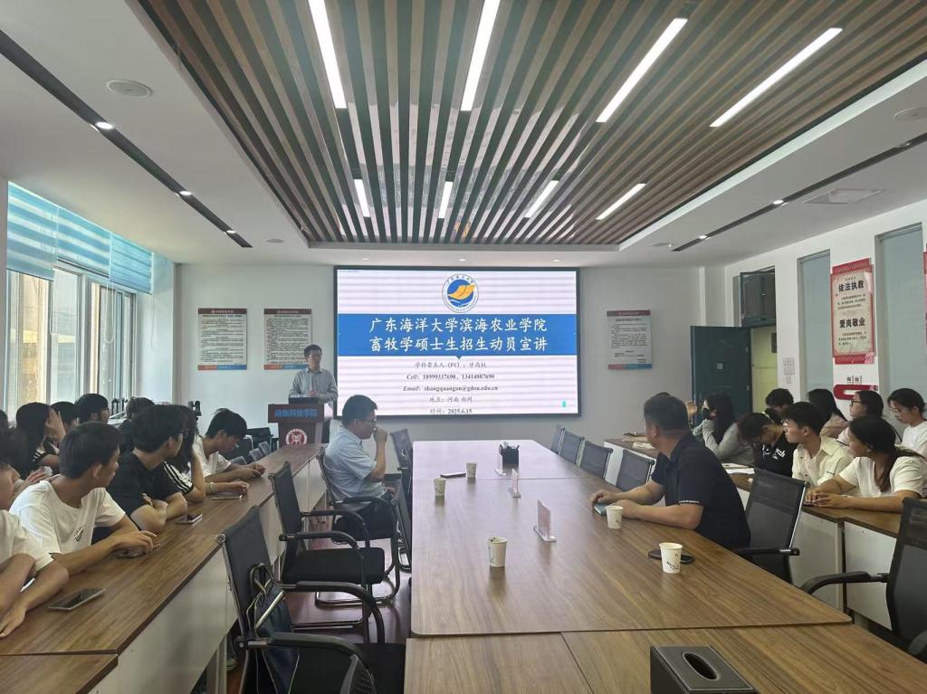宣讲会上,甘尚权研究员以湛江优越的自然环境为切入点,系统介绍了广东海洋大学的办学实力、畜牧学学科特色与师资优势,重点解读招生政策与培养方案。通过展示学科建设成果、科研平台及实践资源,帮助学子全面了解我校研究生育人体系。现场互动热烈,有效激发了学生的报考兴趣。活动结束后,宣讲团即时建立考研咨询群,为学生提供持续的专业指导和信息服务。