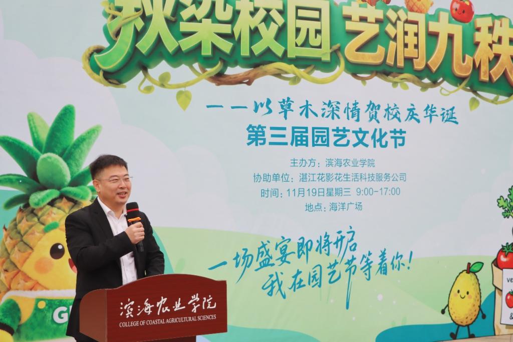 11月19日,以“秋染校园,艺润九秩”为主题的广东海洋大学第三届园艺文化节在湖光校区海洋广场举行。校党委书记杨洲,原湛江市科协主席、校友肖斌,湛江花影花生活科技服务公司董事长、校友何敏桢,优直播nba