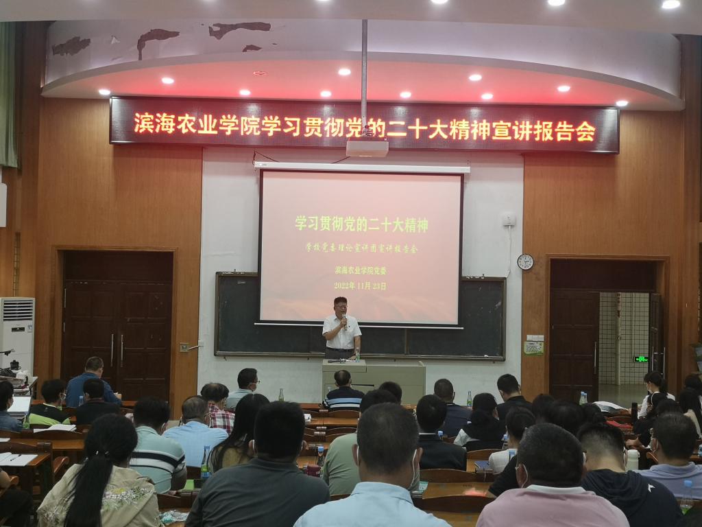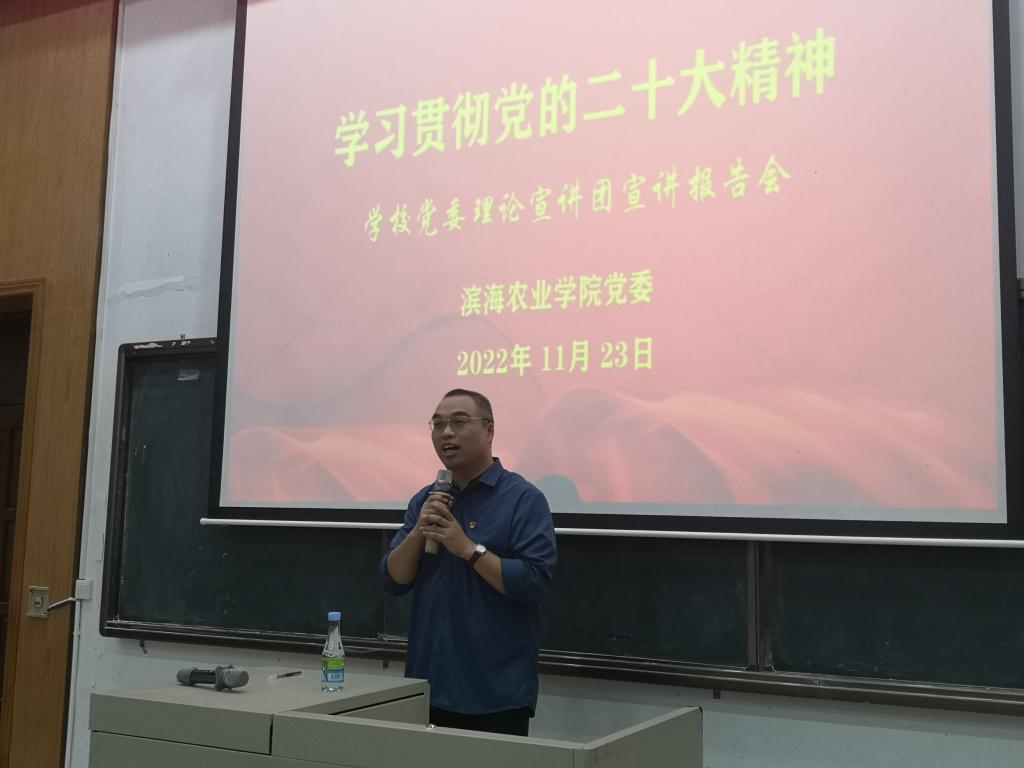 在湖光校区兴农楼109室召开学习贯彻党的二十大精神宣讲报告会,由学校党委理论宣讲团成员李林杰博士主讲,优直播nba