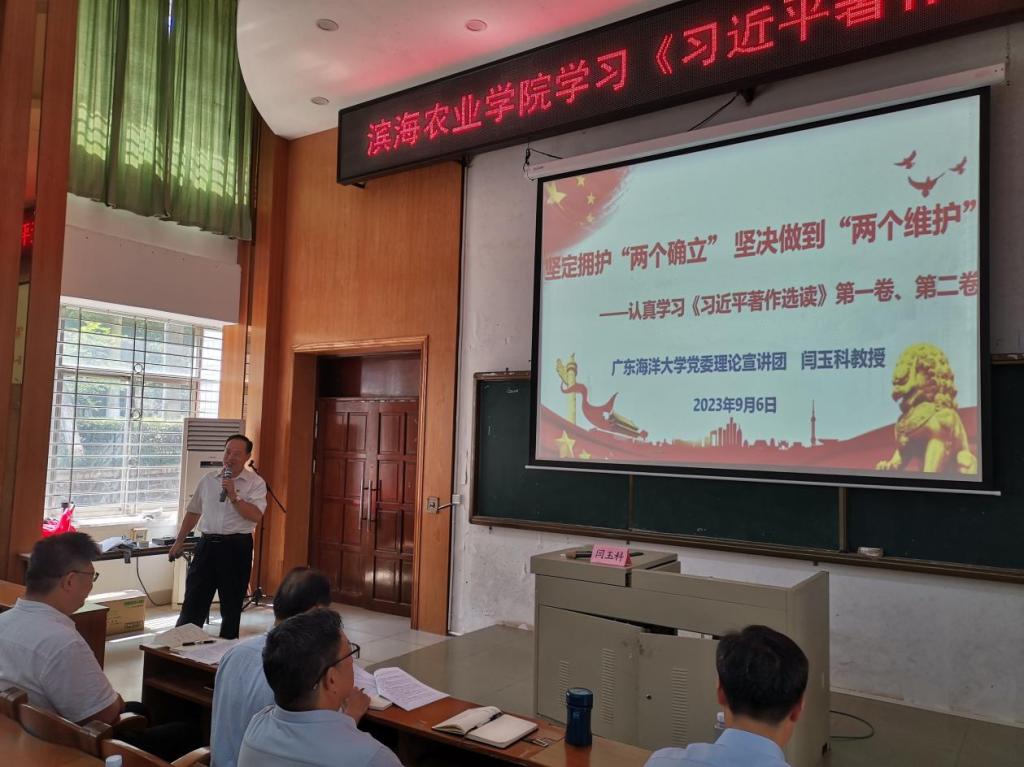 闫玉科教授从《习近平著作选读》第一卷、第二卷出版的背景与意义、主要内容、学习要求与方法进行全方位辅导,并重点解读了习近平总书记在广东考察时的重要讲话精神。