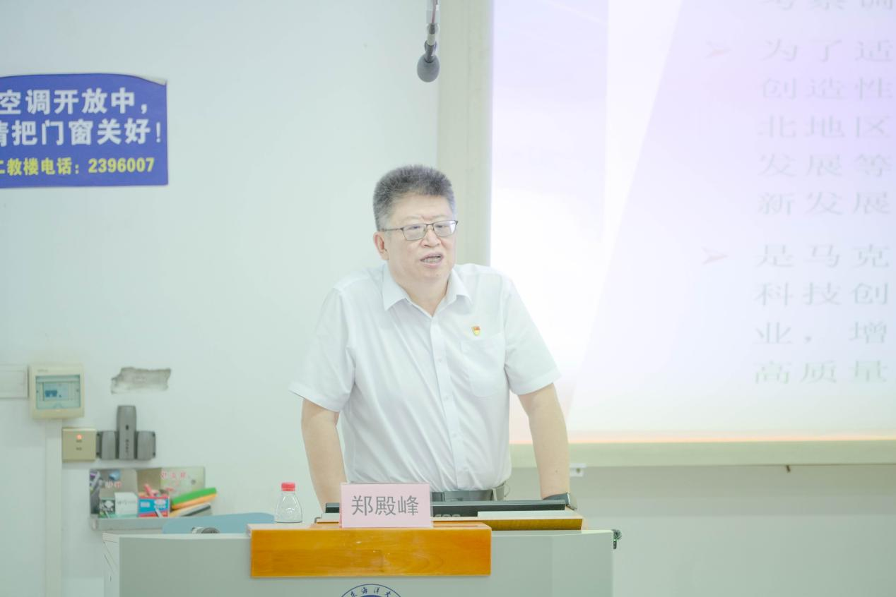 成立仪式后,郑殿峰以《以新质生产力推动中国式农业现代化高质量发展》为题讲思政课。课程立足国家战略需求,系统阐释了农业新质生产力的核心内涵与三大特征,提出“科技创新驱动、产业体系重构、人才梯队建设”三位一体的发展路径。