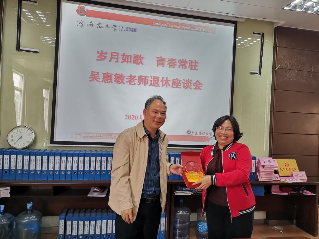 党委邓伟强书记为吴惠敏老师送上纪念品