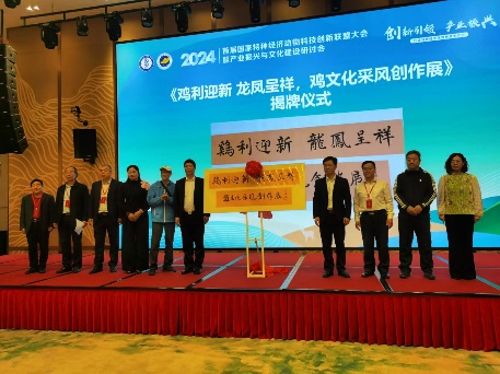 特产研究所所长党委副书记兼联盟理事长孙长伟、广东海洋大学党委副书记谭平、湛江市农业农村局副局长曾彦等先后致辞,介绍了湛江市特种经济动物的发展现状与前景、广东海洋大学畜牧兽医学科领域的优势及湛江地区丰富的畜禽遗传资源,并预祝国家特种经济动物科技创新联盟大会暨产业振兴与文化建设研讨会取得丰硕成果,为推动我国特种经济动物产业持续健康发展作出重要贡献。随后,领导及专家参加了《中国怀乡鸡——历史文化与科学》的首发仪式及《鸡利迎新 龙凤呈祥,鸡文化采风创作展》揭牌仪式。